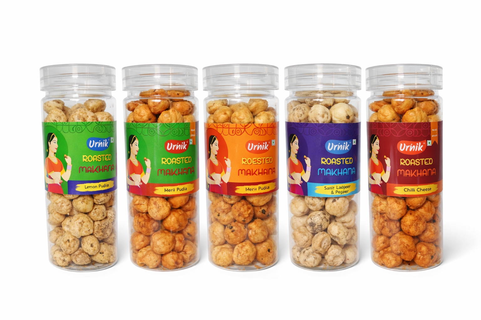 Roasted Multi Flavor Himalayan Salt , Lemon Pudina , Chili Cheese , Cheesy Magic Makhana Pet Jar (Pack of 4) Net Weight – 80 gm